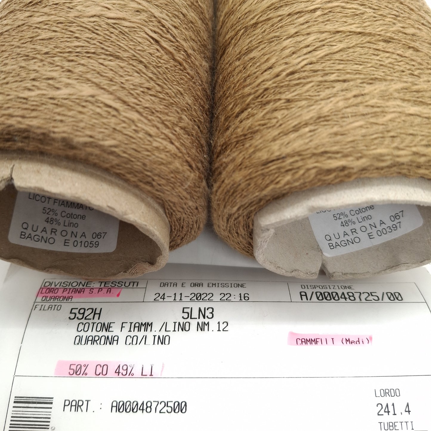 LORO PIANA Linen Cotton Irregular Yarn Italian Flamed Beige color N.P79